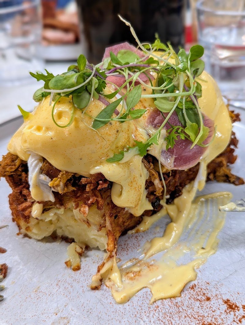 My wife and I came here for a quick lunch today and were pleasantly surprised with the whole experience. My wife had the Eggs Benedict with prawns and I had the smoked pork Adobo burger, both dishes were delectable. Then on the personal recommendation of our friendly waitress we shared a slice of Banoffee pie (went down a treat!). Definitely worth a visit! We will be sure to visit again soon.