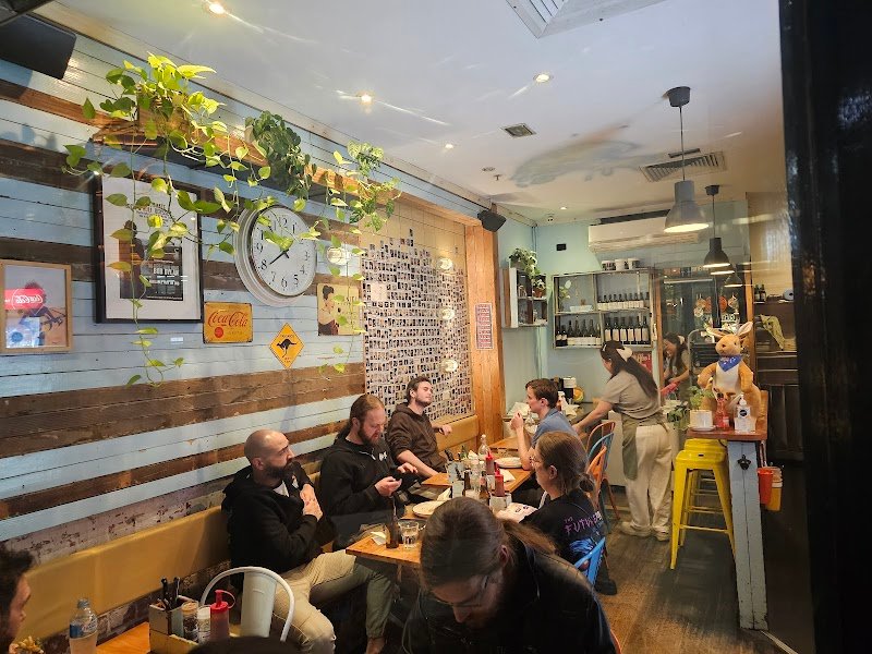 Delicious burger place close to the main train station. They have Australian blizzard meat such as kangaroo , crocodile, emu . Was here for those special burger on purpose. Whatโs surprised is they do not use those meat and make into petties. They grill those real meat and put on the burger with special sauces. The crocodile sauce was spicy was amazing. If you do not told itโs crocodile, it looks like chicken tender. The emu meat was tender. Great place. Can do either to go or dine inside. Also the veggies inside the burger are fresh